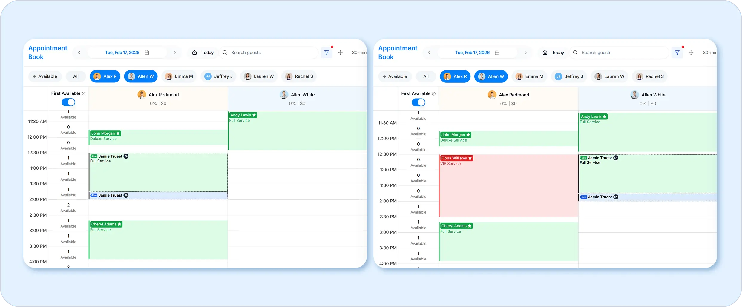 Fill more appointments, reduce daily chaos, and give your team the tools they actually need. BookedBy simplifies operations from booking to checkout so you can focus on growing the business.
