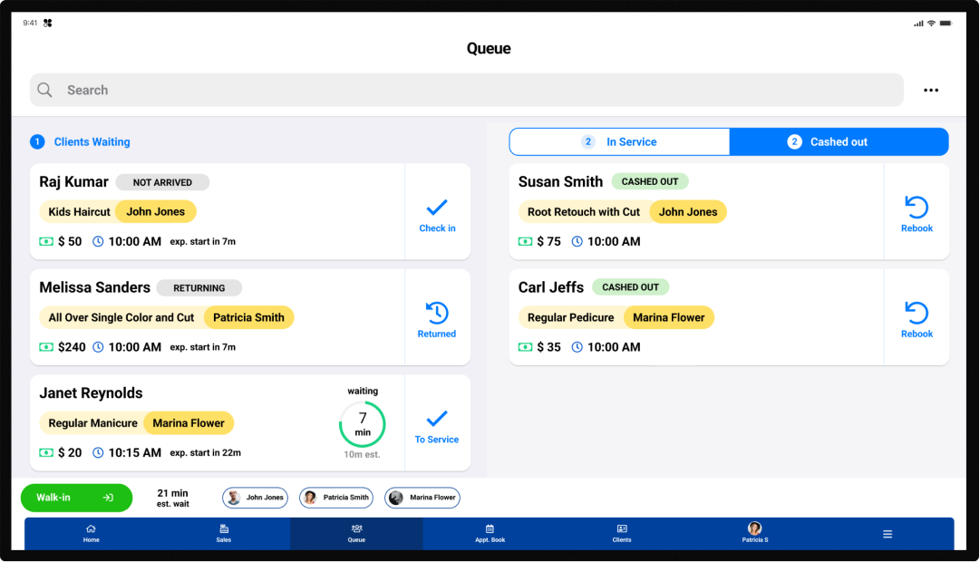Oversee every appointment and walk-in from a single screen.