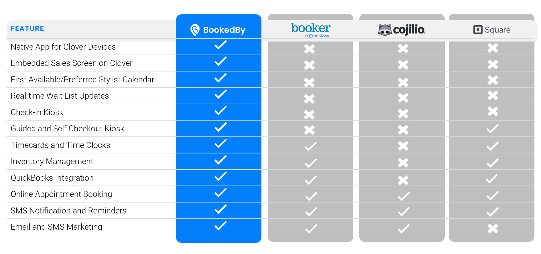 The benefit of BookedBy is we are the only solution that is a truly all-in-one package, combining payments, hardware, and software right out of the box.