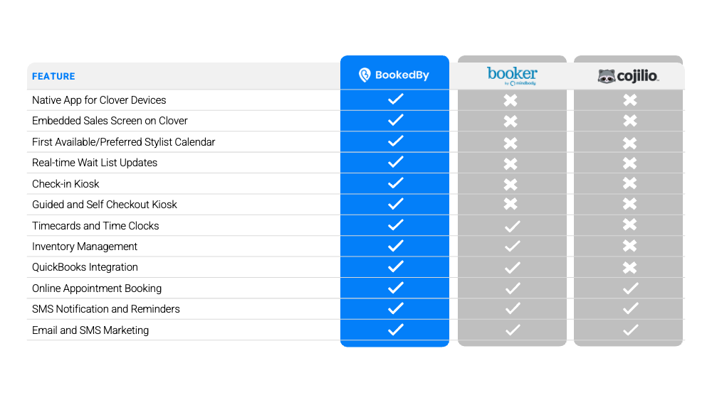 The benefit of BookedBy is we are the only solution that is a truly all-in-one package, combining payments, hardware, and software right out of the box.